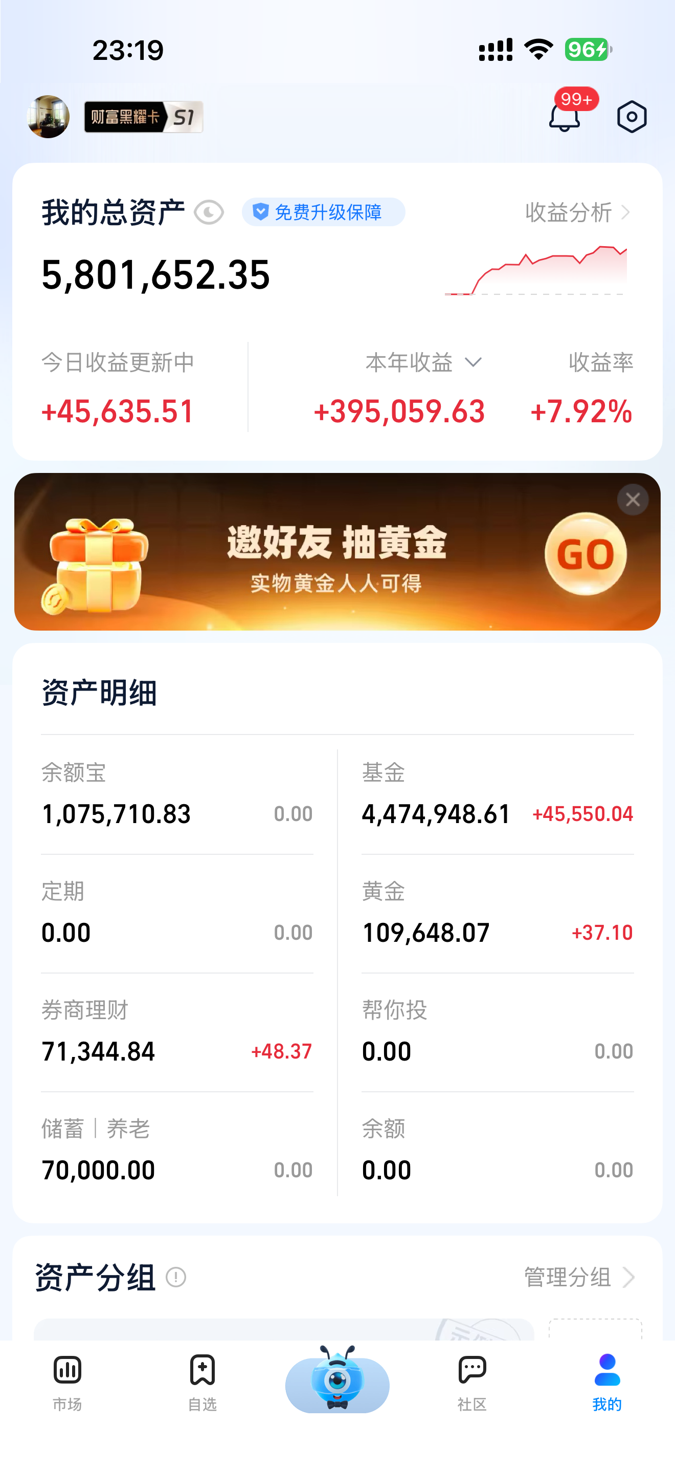 1.晚上好啊兄弟姐妹们, 今晚基金收益已更新,实际是赚了4.5万,今天的行情还是非常惊险刺激,上午开盘大跌,随后深V大涨,而且涨的全是大龙重仓的半导体芯片CPO,今天行情能探底回升主要是因为盘中主力短暂没砸盘,A股现在慢牛还在,坚持就是胜利,加油继续冲冲冲!