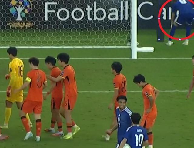 当时是下半场比赛,中国队一度有一些起色,但是刘浩帆在禁区内的手球被判罚了点球,由于是西亚裁判,加上对手有越位嫌疑,中国队所有球员包括门将李昊在内,都上前围住裁判想讨要说法。这个时候,画面中日本队8号球员的一个举动真的太牛了。
