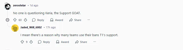 没人质疑Keria,他就是辅助位的GOAT。