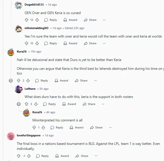 不,我要继续“幻想”并声明:Duro目前还比不上Keria。否则你也可以争论说Keria只能排第三,因为Lehends在Gen.G期间也曾打爆过他。
