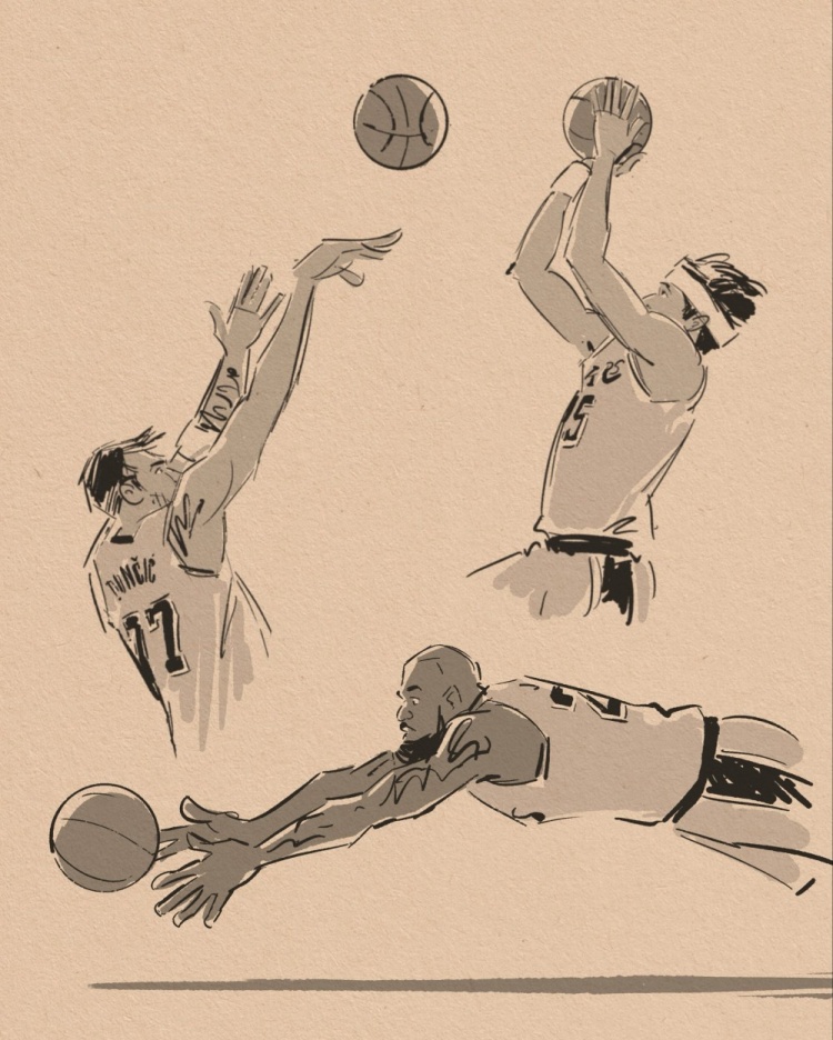 NBA直播-壁纸请收藏!美漫画家晒作品 老詹鱼跃&小里1+2&东契奇绝平全都有